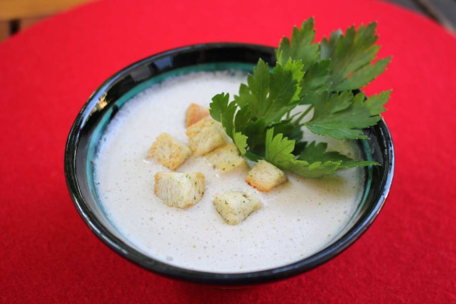 Ukrainische Pampuschky: Die weichen Hefebrötchen mit würzigem Knoblauch-Dill-Topping werden mit Borschtsch oder anderen Suppen serviert. Quelle: Liliya Doroshchuk