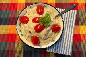 Abschmecken, mit Schnittlauch oder Petersilie dekorieren und mit frischem Brot servieren. Dazu schmecken auch reife Tomaten oder etwas Schafskäse.