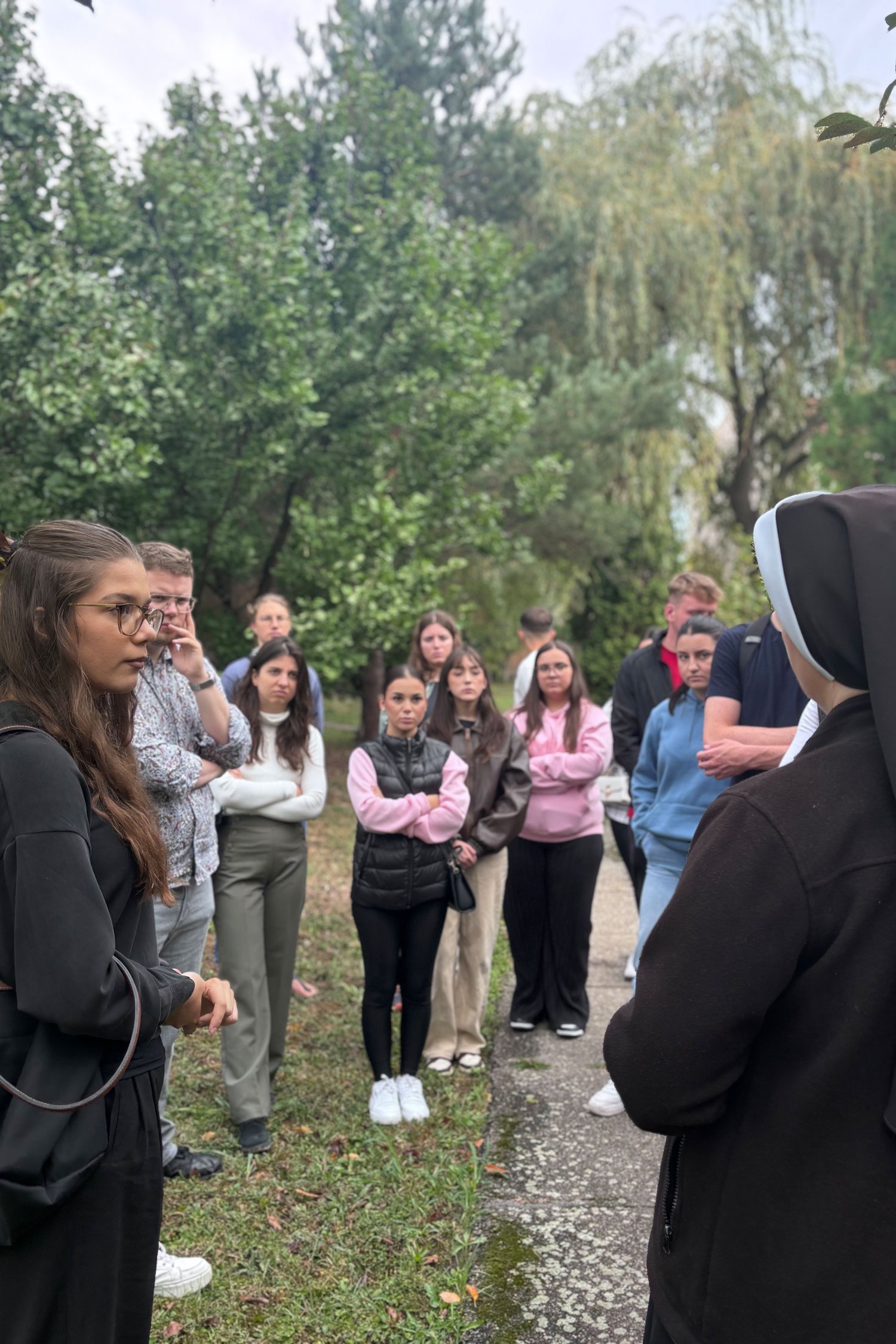 Mit diesem Leitgedanken begann der nächste Tag. Wie jeden Morgen bestimmten wir ein Motto, diesmal „Take Care of all." Es sollte uns daran erinnern, niemanden auszulassen und die Gemeinschaft im Blick zu behalten. Am Vormittag besuchten wir ein Hospiz, das von Franziskanerinnen geleitet wird. Dort übernehmen sie die medizinische wie auch psychologische Betreuung der Patientinnen und Patienten. Die Schwester zeigte uns das Gelände mit seinem schönen Garten und berichtete, dass ihr Hospiz mit zehn Plätzen eine Seltenheit in Rumänien sei. Besonders bewegte uns ein Buch, in dem jeder verstorbene Patient seinen eigenen Eintrag erhält, damit niemand in Vergessenheit gerät. Ihr ältester Patient war 107 Jahre alt, der jüngste 24. Die persönlichen Geschichten über letzte Vergebungen und familiäre Schicksale hinterließen tiefe Eindrücke. Auch Fragen wie „Wollt ihr wissen, wann und wie ihr sterbt?“ oder „Habt ihr Angst vor dem Tod?“ regten uns zum Nachdenken an.