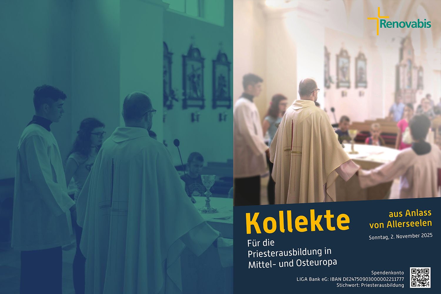 Am Sonntag, den 2. November 2025 dient die Kollekte in allen katholischen Kirchen in Deutschland der Unterstützung der Priesterausbildung in Mittel- und Osteuropa. Für die Kirche in den ehemals kommunistischen Ländern Mittel-, Ost- und Südosteuropas ist die Priesterausbildung nach wie vor von großer Bedeutung: Seelsorge ist gefragt und gefordert, die Hilfe und der Beistand von Priestern, Ordensleuten und anderen Seelsorgerinnen und Seelsorgern sind heute vielleicht wichtiger denn je. Renovabis unterstützt dieses Anliegen im Auftrag der Deutschen Bischofskonferenz. Helfen Sie uns bei der Bewerbung der Kollekte aus Anlass von Allerseelen: Weil gute Priester gebraucht werden!
