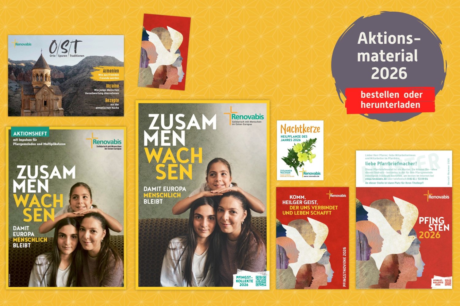 Entdecken Sie das neue Heft „OST – Orte. Spuren. Traditionen“. In der ersten Ausgabe blicken wir nach Armenien und in die Ukraine. Erfahren Sie, wie Menschen nach der Flucht Hoffnung finden und junge Erwachsene Verantwortung übernehmen. Ein Magazin über Begegnungen, die Grenzen überwinden. | Format A5 quer, 16 Seiten | Sie erhalten das Magazin mit der Artikelnummer 1826 kostenlos im shop.renovabis.de. Für telefonische Bestellungen erreichen Sie uns unter 08161 / 53 09 64 oder bestellen Sie per Mail an bestellen@shop.renovabis.de.