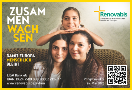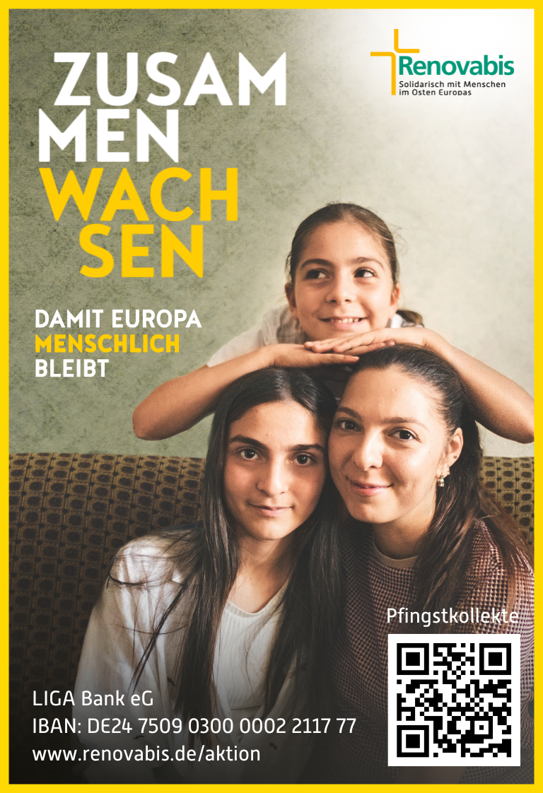 Unter dem Leitwort „zusammen_wachsen. damit Europa menschlich bleibt“ rückt die Renovabis-Pfingstaktion 2026 den gesellschaftlichen Zusammenhalt in den Fokus. Angesichts von Kriegen, sozialer Ungleichheit und zunehmender Polarisierung in ganz Europa setzen sich Renovabis und seine Partner aktiv für Dialog, Versöhnung und Mitmenschlichkeit ein. Ob in der Ukraine, in Südosteuropa oder hier bei uns: Die Aktion zeigt, wie die Projektpartnerinnen und -partner von Renovabis Räume der Begegnung schaffen und benachteiligte Gruppen stärken. Das Motto „zusammen_wachsen“ ruft dazu auf, in Solidarität enger zusammenzurücken und gemeinsam an einem gerechten Europa zu bauen. Wir laden Sie ein, diese wichtige Arbeit durch Ihre Spende und Ihr Engagement zu unterstützen.