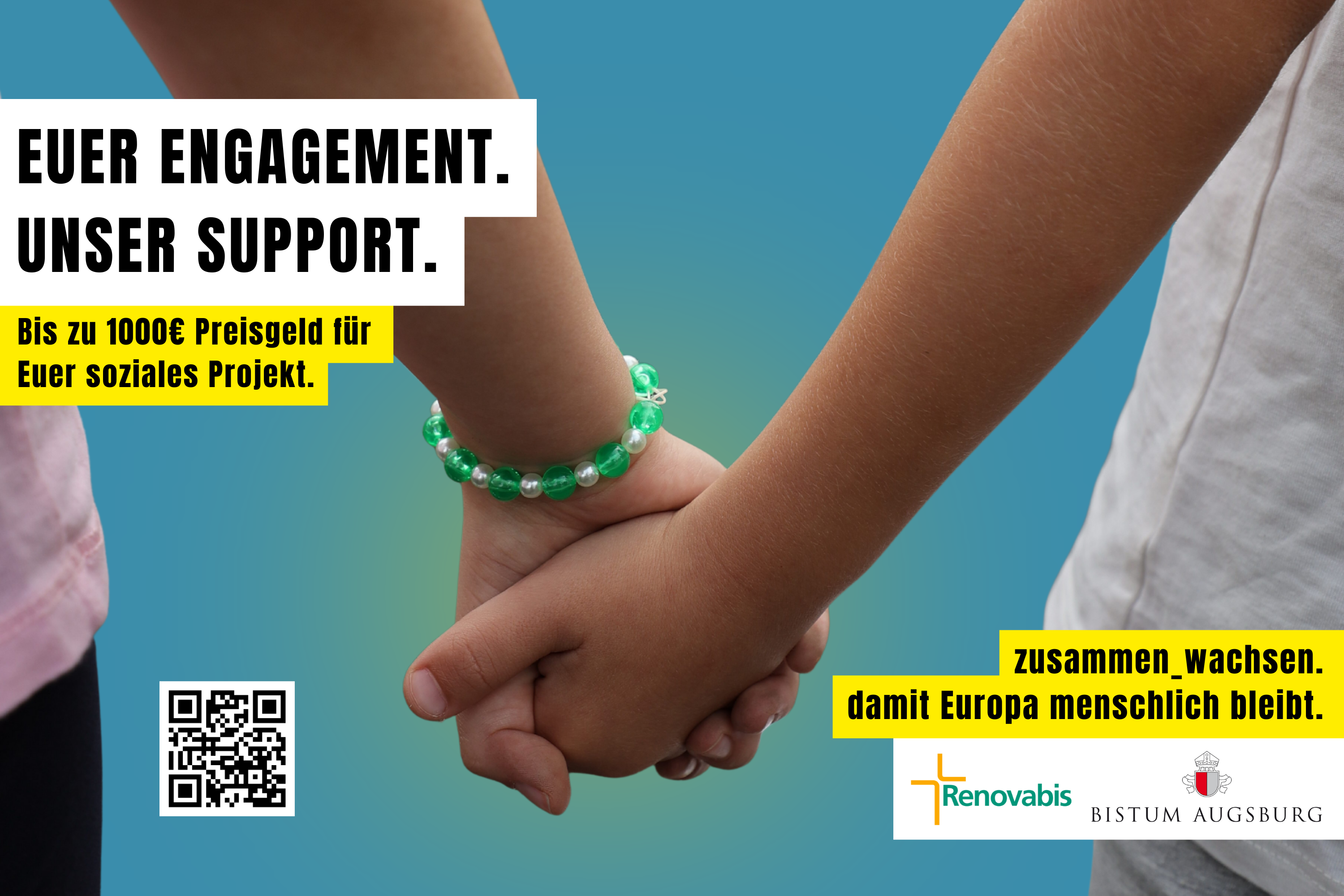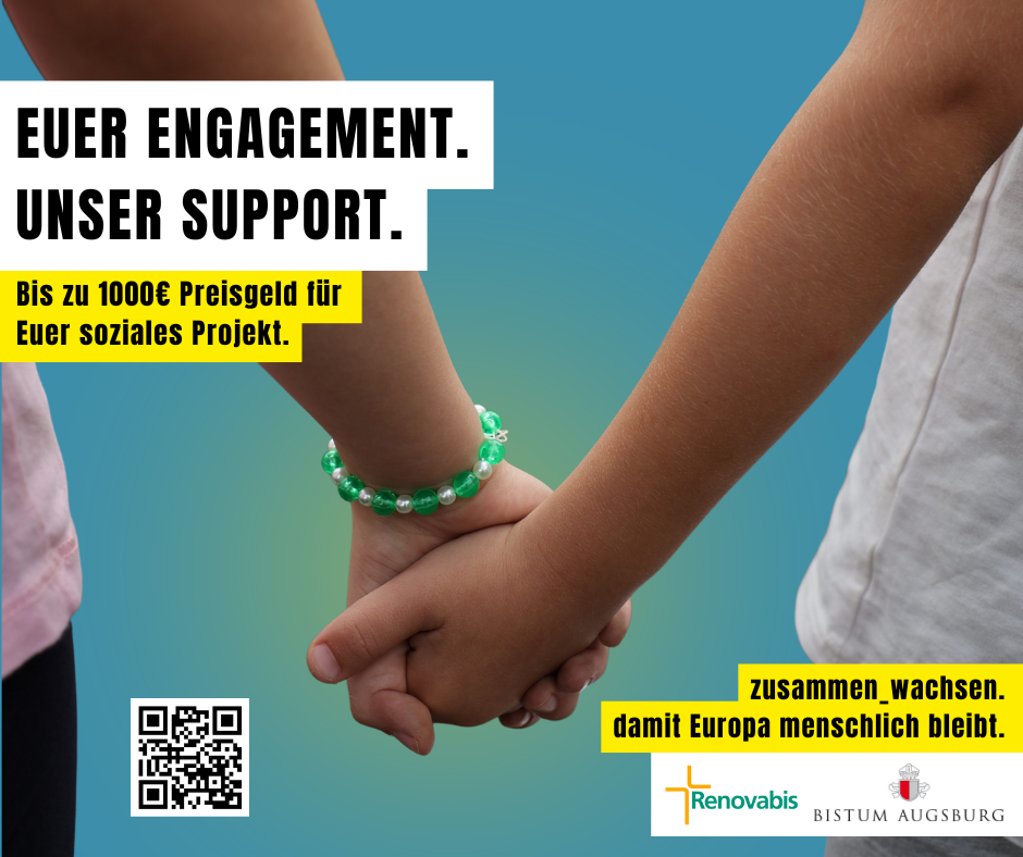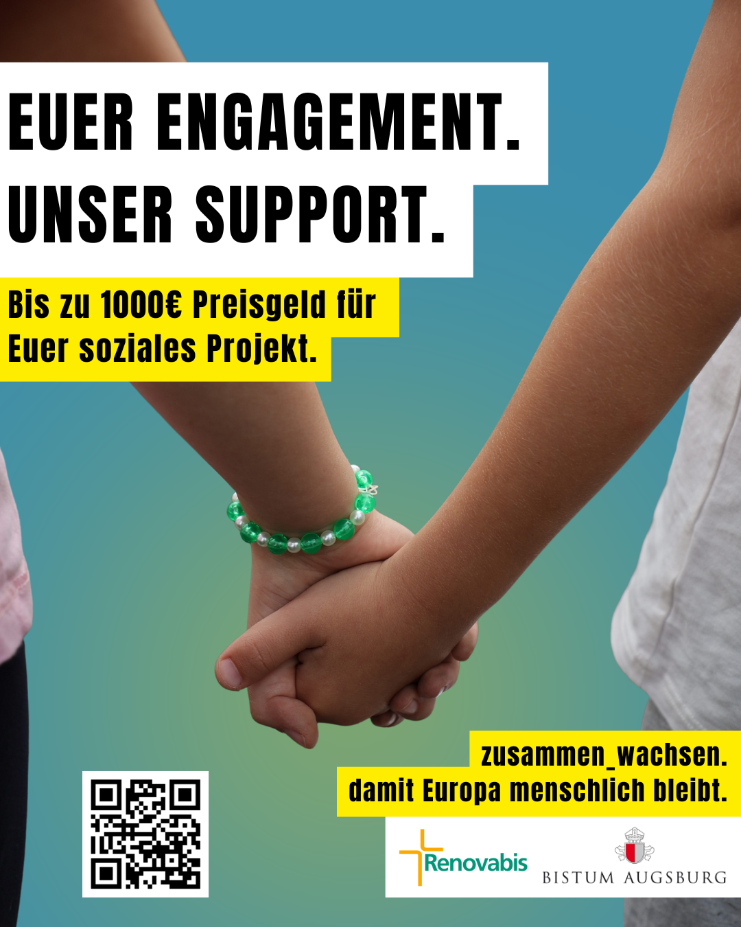 Bitte sendet eine kurze Beschreibung Eures Projekts (max. 2 Seiten) als Mail, ggf. mit Fotos, Videos (als Link), bis Freitag den 27.03.2026 an: schuelerwettbewerb-renovabis@bistum-augsburg.de