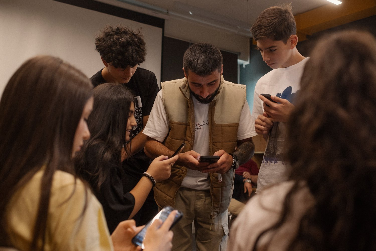 Kurz vor der Mittagspause kommen alle im großen Seminarraum zusammen, um die Ergebnisse der Kleingruppen zu präsentieren. „Habt ihr etwas dagegen, wenn wir unsere Präsentation im Dialekt von Bergkarabach machen?“ fragt ein Mädchen aus der Rap-Gruppe. Im Alltag tun sich viele Armenier mit dem Dialekt der Geflüchteten noch immer schwer. Aber hier rufen alle wie aus einem Mund „Nein.“