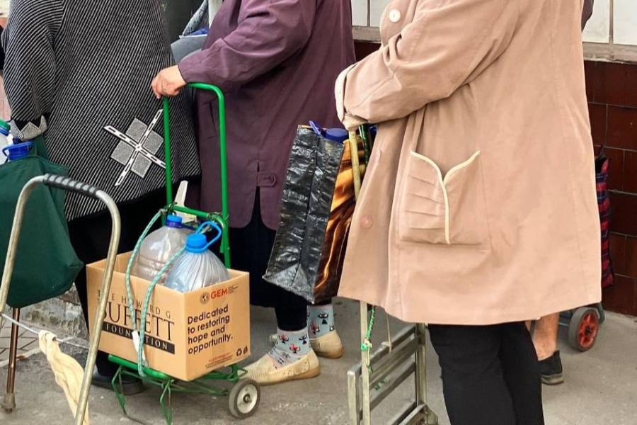 In der Gemeinde Selydove kann mittlerweile an 17 Standorten Trinkwasser kostenlos abgeholt werden. Dazu kommen fünf Standorte mit Trinkwasserreservoirs in der Gemeinde Novogrodivka. 40 Tonnen Wasser bringen die Freiwilligen jede Woche in diese Gemeinden. Täglich können rund 500 Personen je 10 Liter Wasser erhalten. Caritas Mariupol übernimmt die Zulieferung des Trinkwassers und organisiert die Verteilung.