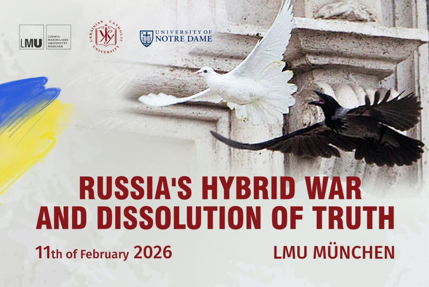 Vor diesem Hintergrund veranstalten die Ludwig-Maximilians-Universität München, die Ukrainian Catholic University (Lviv) und die University of Notre Dame (Indiana, USA) bereits zum dritten Mal das Münchner Friedenssymposium. Am 11.02.2026 kommen unter dem Titel „Russlands hybride Kriegsführung und die Auflösung der Wahrheit“ Expertinnen und Experten im Senatssaal der LMU zusammen, um über die Aushöhlung der Wahrheit – aber auch über den Wiederaufbau einer wahrhaftigen und gerechten Ordnung zu sprechen. Zu den Gästen zählen der Erzbischof von München und Freising Kardinal Dr. Reinhard Marx, die Theologin Regina Elsner von der Universität Münster, sowie der Osteuropa-Historiker Karl Schlögel.